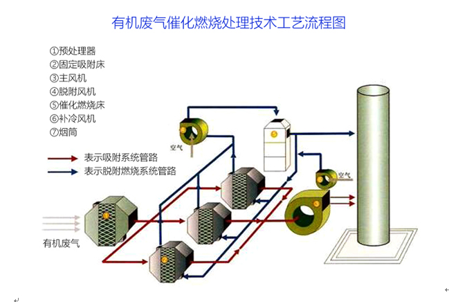該裝置是將濃縮的有機(jī)廢氣引入主要設(shè)備。有機(jī)廢氣經(jīng)內(nèi)裝加熱裝置從活性炭層中將有機(jī)物分離后,通過(guò)催化劑的作用分解成水和二氧化碳,同時(shí)釋放能量,由熱交換裝置置換能量,用于維護(hù)設(shè)備自燃的能源。