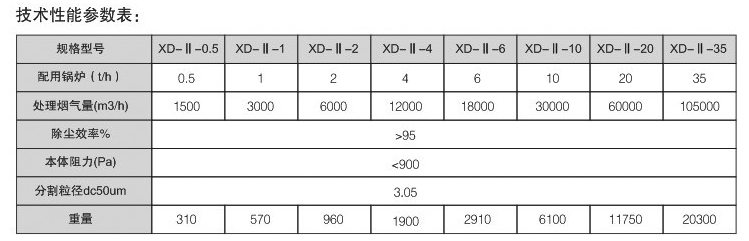 XD-Ⅱ型多管旋風(fēng)除塵器是一種高效的除塵器,除塵效率可達95%以上,除塵器本體阻力低于900Pa,用現(xiàn)有的鍋爐引風(fēng)機就能保證鍋爐正常運行。本除塵器負荷適應(yīng)性好,在70%負荷時,除塵效率在94%以上。