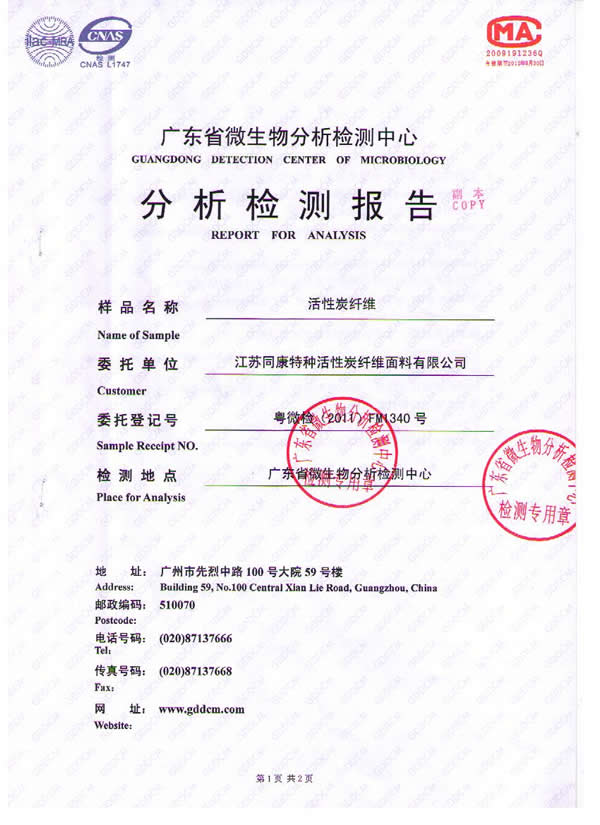 江蘇同康特種活性炭纖維面料有限公司